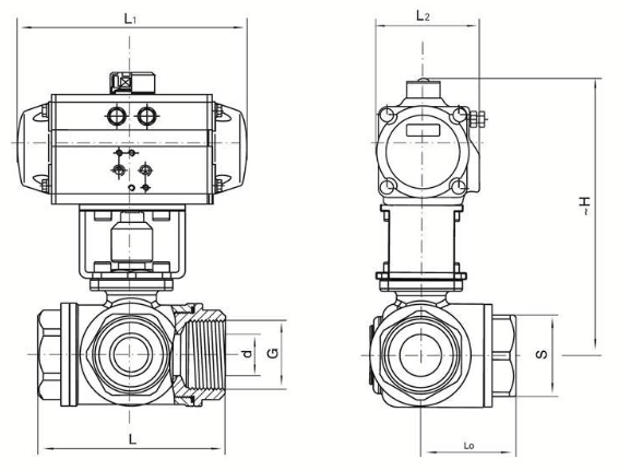 2、氣動裝置與閥門的連接尺寸應符合ISO5211(底部)、 GB/T12222 和 GB/T12223 的規定。