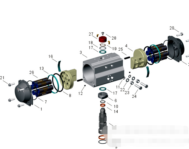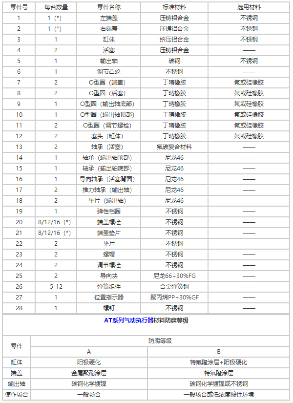 AT系列氣動(dòng)執(zhí)行器各零部件材料如下表: